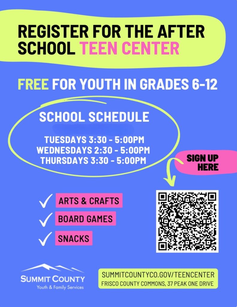 The Teen Center is designed to provide a safe place with trusted adults for local youth in grades 6 to 12 to socialize and participate in activities. The Teen Center provides snacks, arts and crafts, and games at no cost.